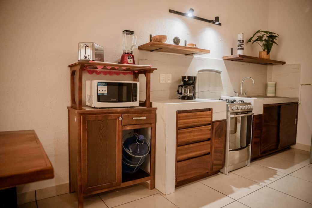 Blender, Coffee machine, Cooking utensils, Kitchen stove, Microwave, Refrigerator, Toaster